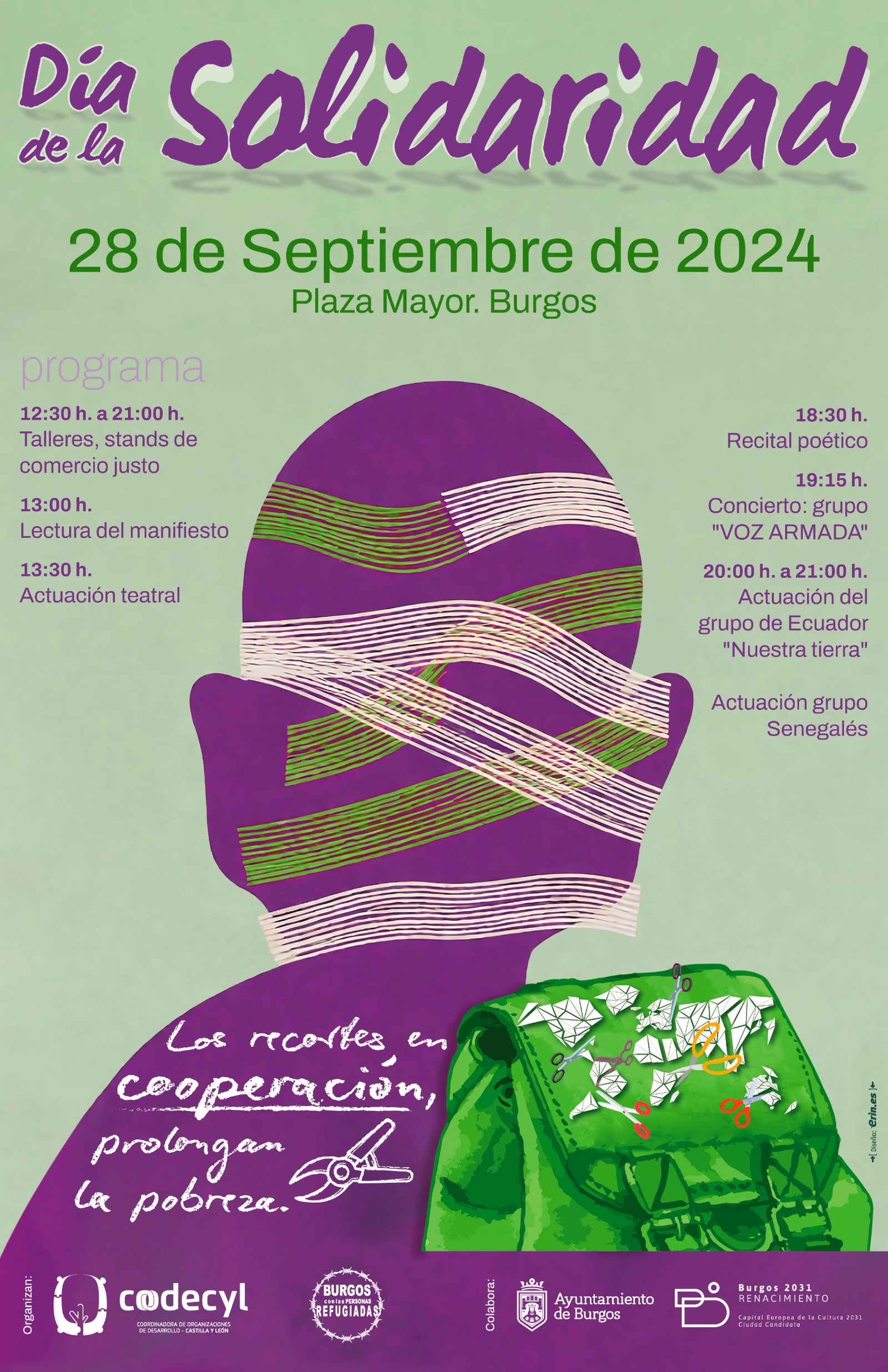 ESTE SÁBADO 28 DE SEPTIEMBRE EN LA PLAZA MAYOR DE BURGOS CONCIERTOS GRATUITOS, STANDS DE COMERCIO JUSTO Y LECTURA POR EL ESCRITOR OSCAR ESQUIVIAS DEL MANIFIESTO PARA CELEBRAR EL DÍA DE LA SOLIDARIDAD, ORGANIZADO POR LAS ONGD DE BURGOS PERTENECIENTES A LA COODECYL, BAJO EL LEMA ¡LOS RECORTES EN COOPERACIÓN PROLONGAN LA POBREZA!