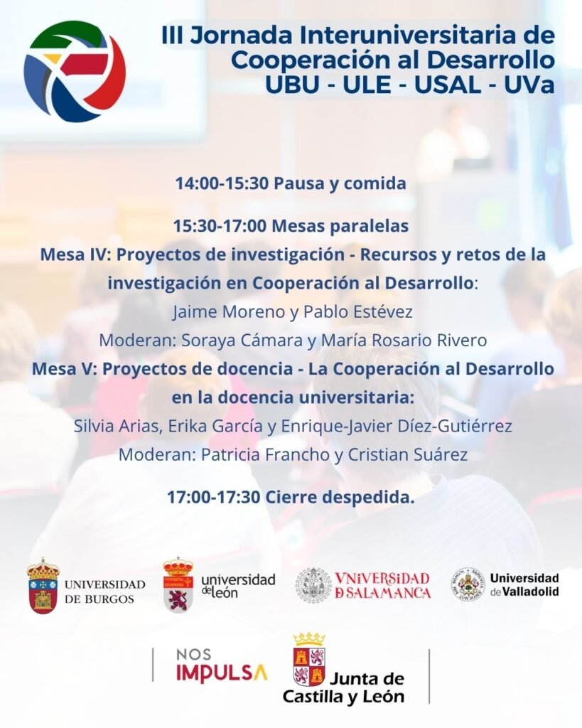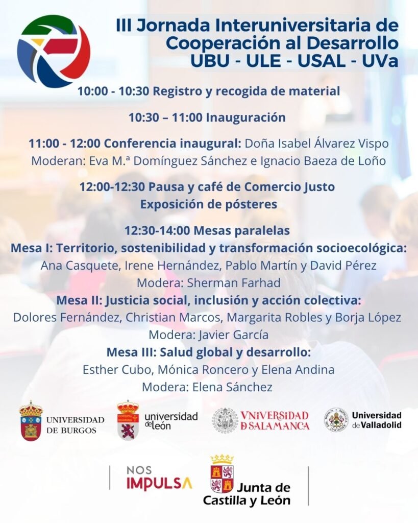 Más información: https://www.ubu.es/agenda/iii-jornada-interuniversitaria-de-cooperacion-al-desarrollo-de-las-universidades-publicas-de-castilla-y-leon