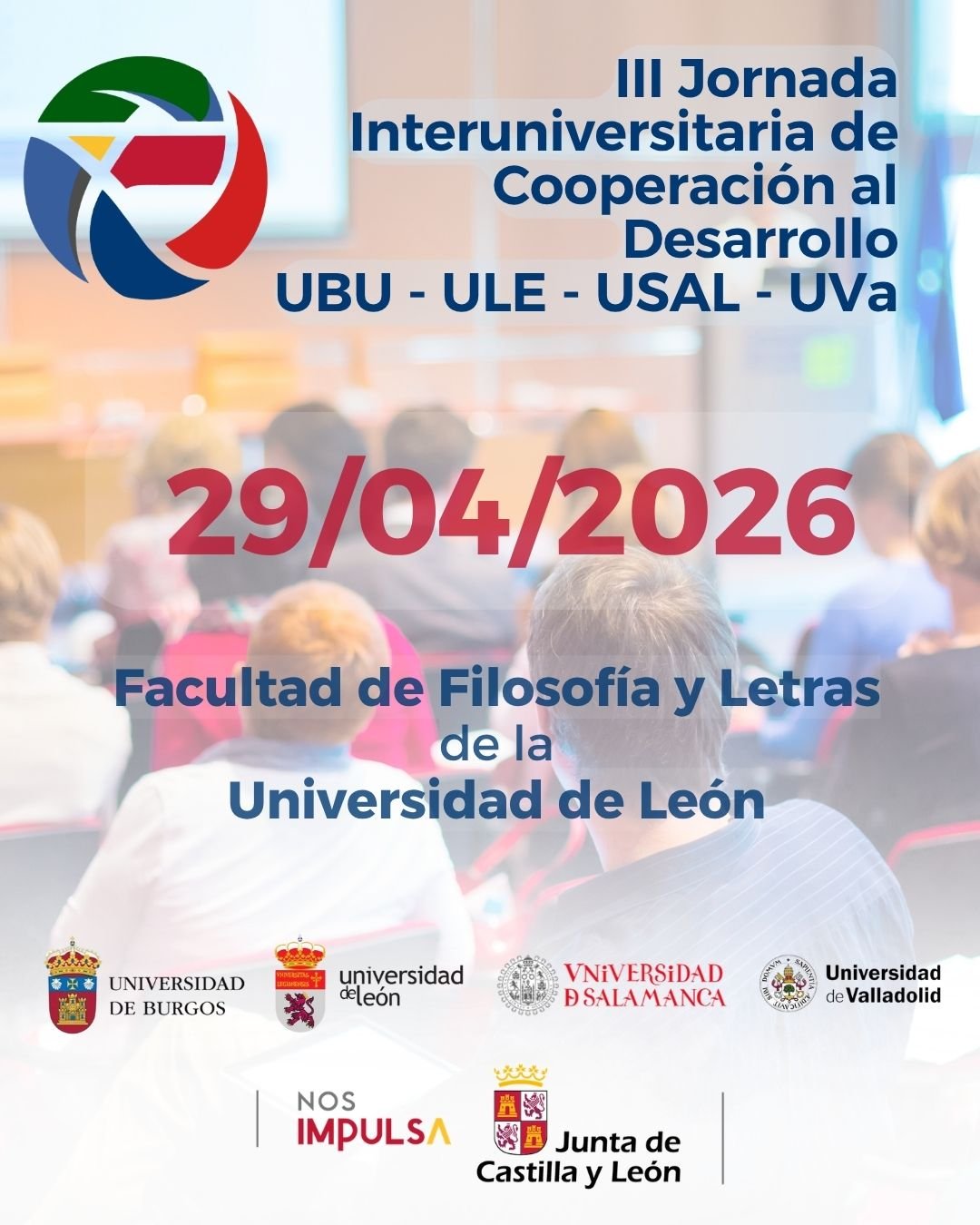 La III Jornada Interuniversitaria de Cooperación al Desarrollo de las Universidades Públicas de Castilla y León se celebrará el próximo 29 de abril de 2026 en la Facultad de Filosofía y Letras de la Universidad de León, ubicada en el Campus de Vegazana. El encuentro tendrá lugar en horario de 10:00 a 17:30 horas y contará con entrada gratuita hasta completar aforo.